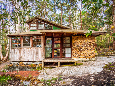 Twenty four hectares of native karri, tingle and jarrah forest on the edge of Wilson Inlet, only minutes from Denmark town and the beach in Western Australia. Creative use of timber and glass features in the Cove’s choice of 5 craftsman-built, self-contained chalets.