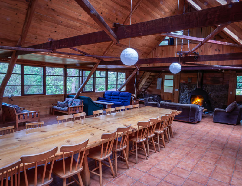 This open plan building has a 25-seater table and a large open fire. Suitable for an extended family, 2-3 families or special interest groups. Mattresses can ziplock to form 4 queen sized beds.