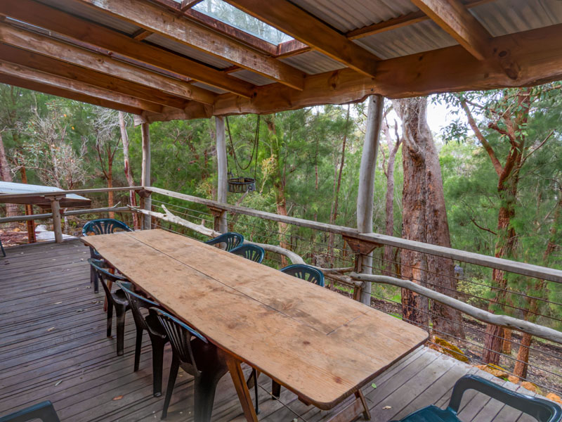An extensive covered timber deck provides a great view of the forest canopy.